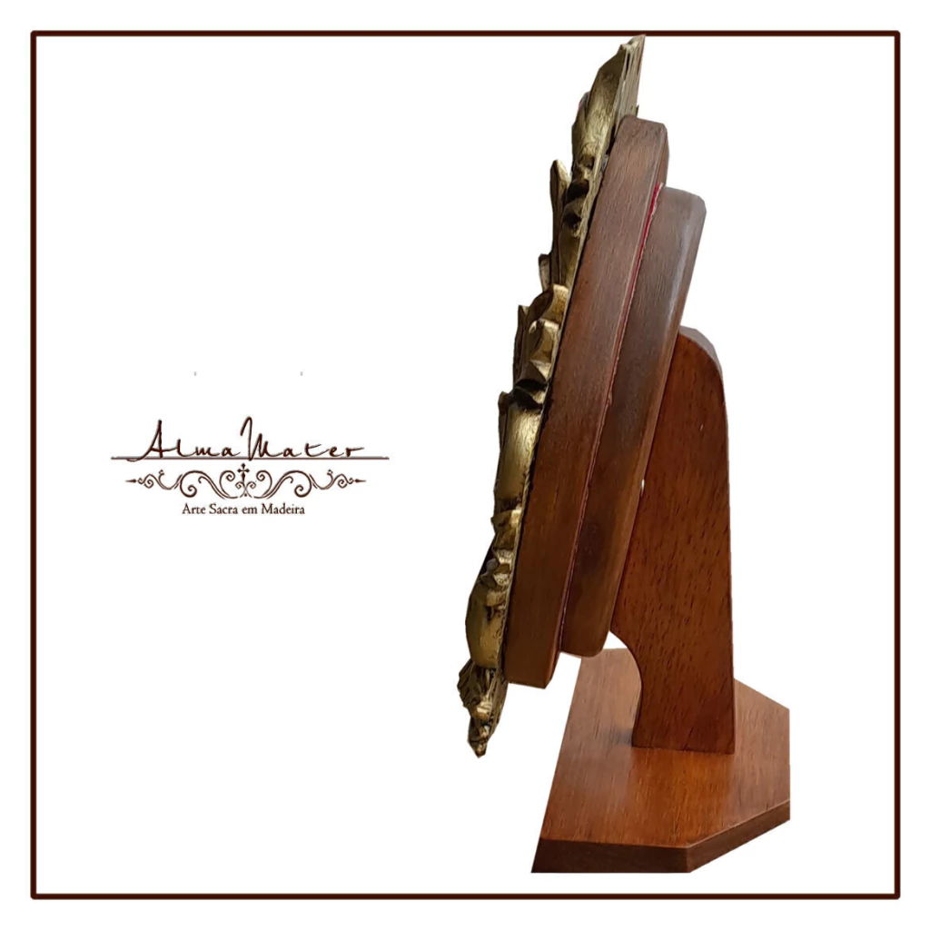 Espaço oval para colocação da relíquia (C x A): 8,5 x 13 cm - forro em tecido vermelho