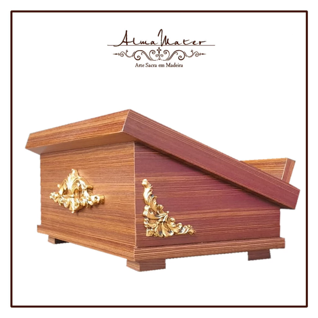 Suporte para missal ou bíblia. Confeccionado em compensado virola imunizado, revestido por lâmina pré-composta e acabamento em verniz.